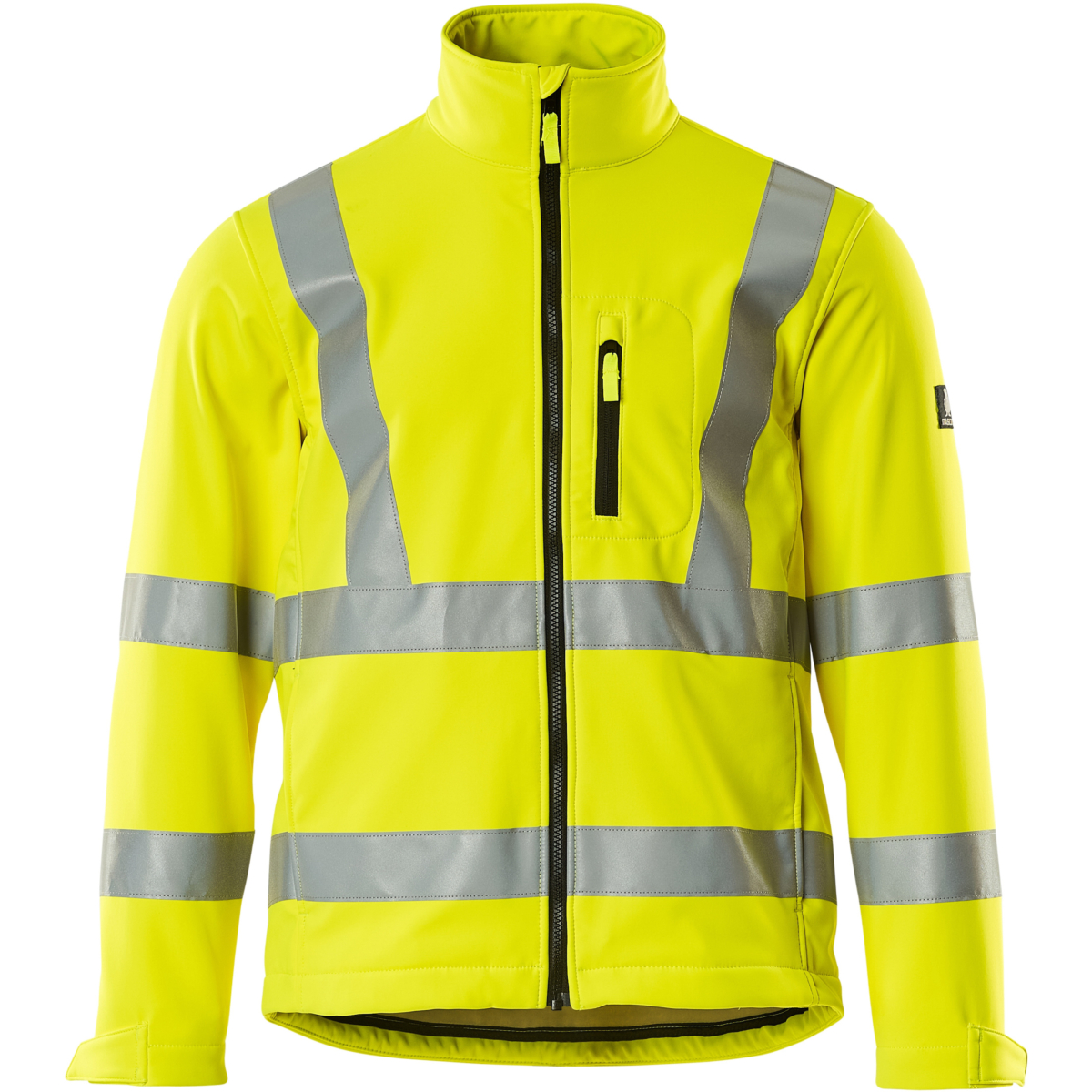 Fluorescerande och med lod- och vågräta reflexer. Andasfunktion. Fleece på insidan. Stängning med blixtlås och invändigt vindfång. Bröstficka med blixtlås. Fickor på framstycket. Innerfickor. Ergonomiskt utformade ärmar ger god rörelsefrihet. Kardborreband vid handleden. Resårkanten i nederkanten är reglerbar.