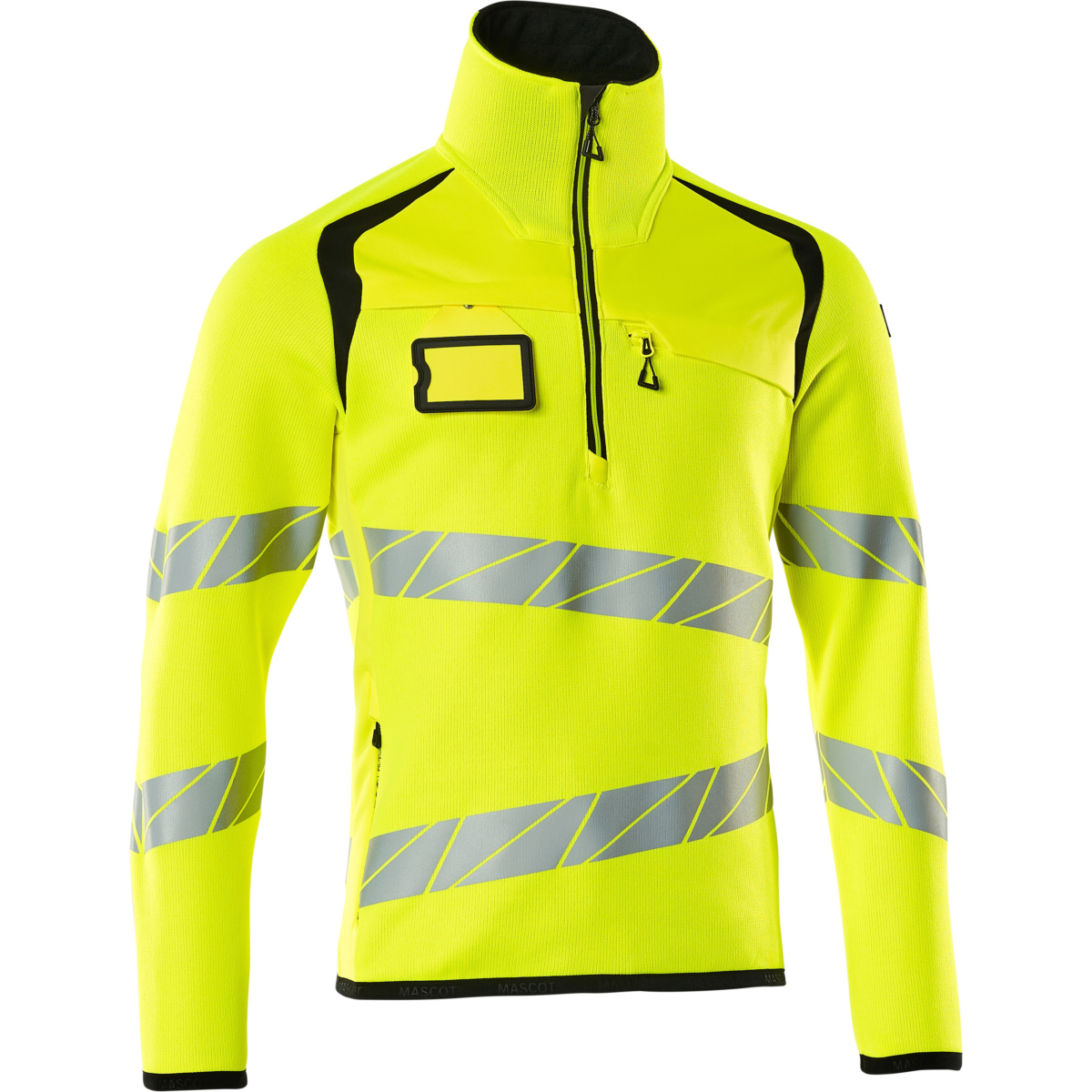 Fluorescerande med sneda tvärgående reflexer. Modern, mer kroppsnära passform med riktigt bra rörelsefrihet. Hög krage. Tvåfärgad. Blixtlås i hals med vindskydd. Bröstficka med blixtlås. Framfickor med blixtlås. Resår vid handleden och i nederkanten. ID-kortshållaren är avtagbar.