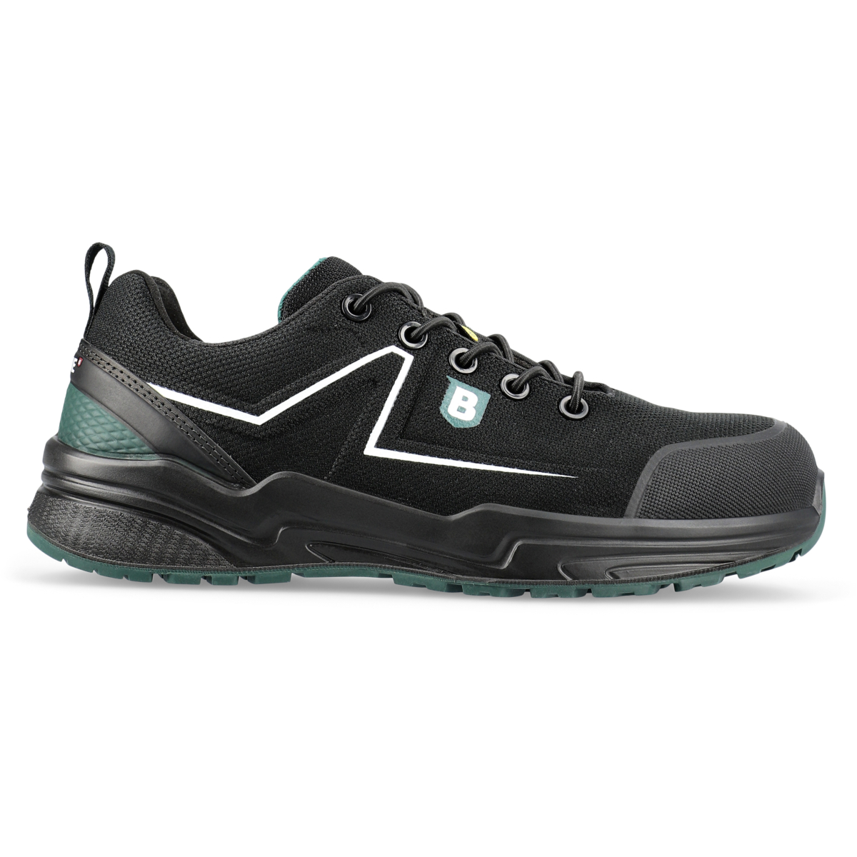 Flexibel, lätt och slitstark skyddssko med enkelt och snabbt system med resårskosnören. Skorna är av slitstark, snabbtorkande och ventilerande textil. Med extra halkhämmande och stötabsorberande yttersula av PU/gummi som ger bra och säkert fotfäste. Den mjuka, ventilerande och stötabsorberande inläggssulan bidrar till en riktigt bra komfort och minskar samtidigt belastningen på leder, fötter, ben och rygg. Det ventilerande innerfodret har extra förstärkning i hälen. Med ProNose av TPU. ESD-godkänd och PVC-fri.