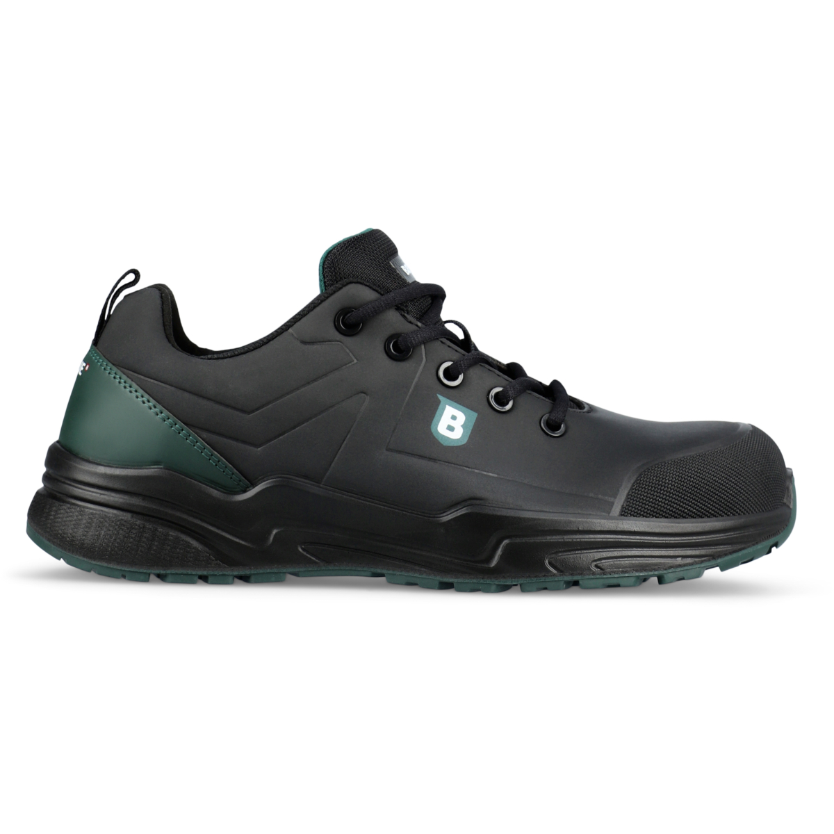 Flexibel, lätt och slitstark skyddssko. Av vattenavvisande mikrofiber som andas och med endast några få sömmar. Enkel att rengöra. Med extra halkhämmande och stötabsorberande yttersula av PU/gummi som ger bra och säkert fotfäste. Den mjuka, ventilerande och stötabsorberande inläggssulan bidrar till en riktigt bra komfort och minskar samtidigt belastningen på leder, fötter, ben och rygg. Det ventilerande innerfodret har extra förstärkning i hälen. Med ProNose av TPU. ESD-godkänd och PVC-fri.