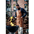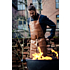 Bröstlappsförkläde med reglerbart hängsle och knytband.