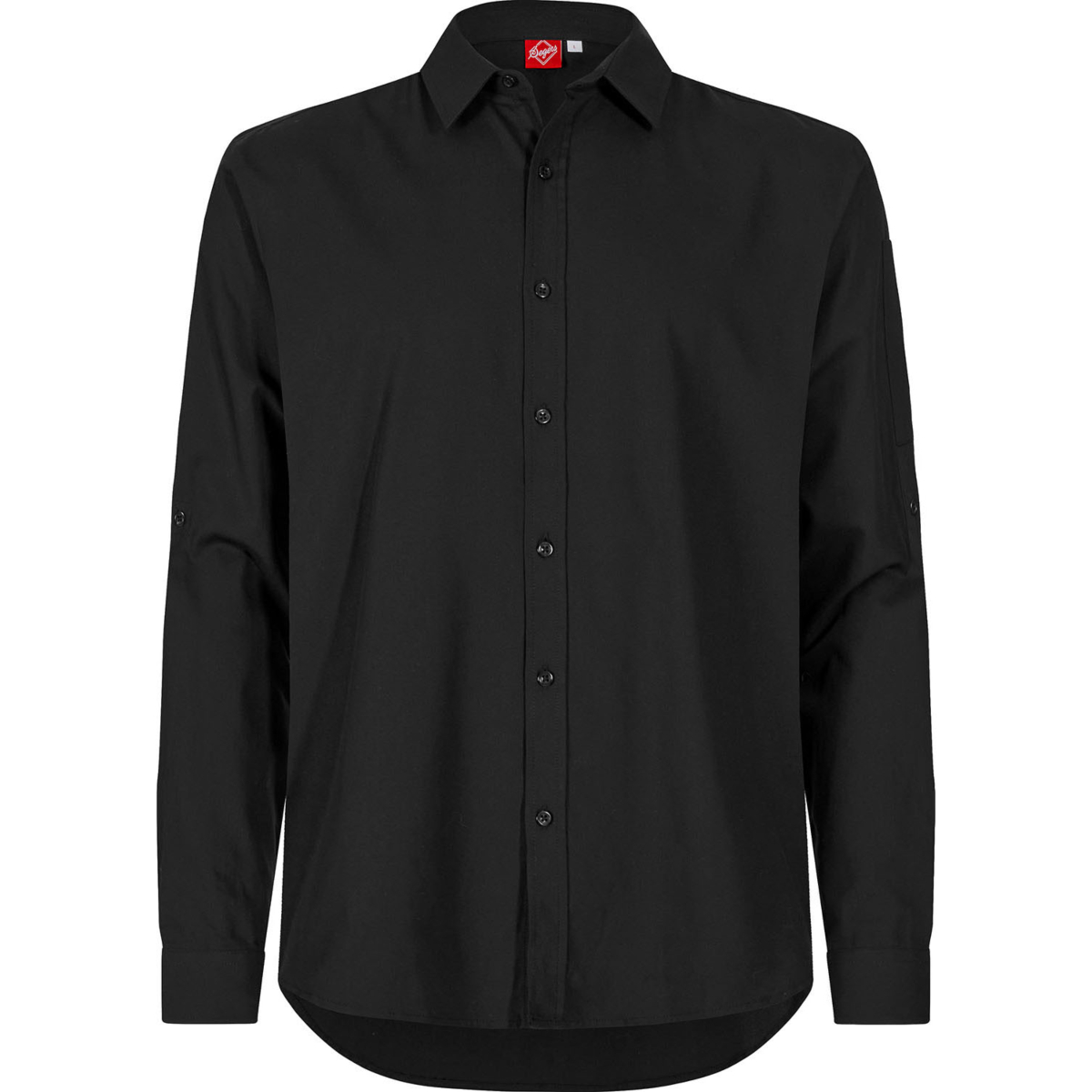 Herrskjorta med normal passform. Skjortan har motveck bak för rörelsevidd och kan bäras löst hängande utanpå men även instoppad i midjan.