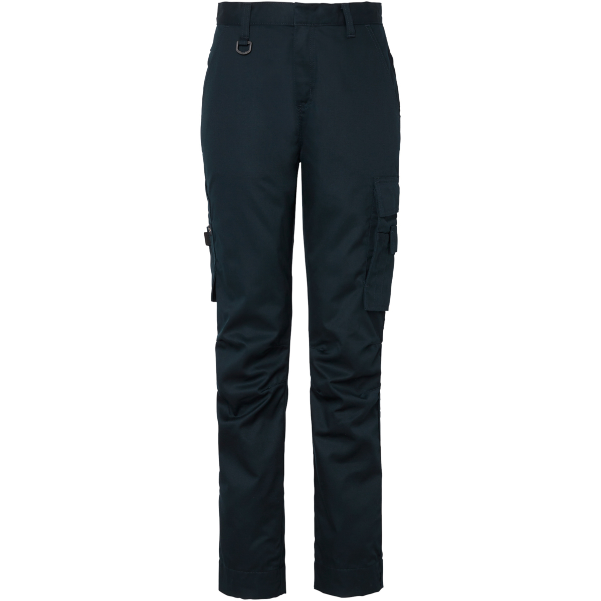 Servicebyxa i dampassform passande för många olika typer av yrken. Gjord i slitstarkt material med mekanisk stretch. Byxan har generöst med rymliga fickor, tumstocksficka och benficka med mobilficka. Förlängningsmöjlighet (5 cm) i benavslut.