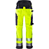 Vatten- och vindtät med andasfunktion / Multinorm / Inherent flamskydd / Smuts-, olje- och vattenavvisande / Elastiska avtagbara hängslen som fästs i sidorna och är korsade i ryggen för bättre komfort och stabilitet / Midja med infälld sidoresår och bälteshällor / Förhöjd midja bak / Dold knapp fram / 2 framfickor med lock och dragkedja / 2 bakfickor med lock och dolda tryckknappar / Hammarhank / Dubbel förstärkt grensöm / Rymlig benficka med lock och tryckknapp, tumstocksficka samt knapp och hälla för kniv / Rymlig benficka med lock och tryckknapp, tumstocksficka och telefonficka / Förböjda knän / CORDURA®-förstärkta knäfickor med öppning inifrån / Knäskydden i knäfickorna kan höjdjusteras / Dold dragkedja upp till knä / Snölås / Reglerbara benslut med rem och spänne / Vattenpelare 10.000 mm / Andasfunktion RET 14,44 / Godkänd enligt EN 61482-1-2 APC 2, EN 61482-1-1 ELIM: 27 cal/cm², EN ISO 11612 A1 A2 B1 C1 F1, EN ISO 11611 A1 A2 klass 1, EN 1149-5, EN 13034 typ PB [6], EN ISO 20471 klass 2, EN 343 klass 3/4 och EN 14404 tillsammans med knäskydd 124292 / Certifierad efter 25 tvättar / OEKO-TEX®-certifierad.