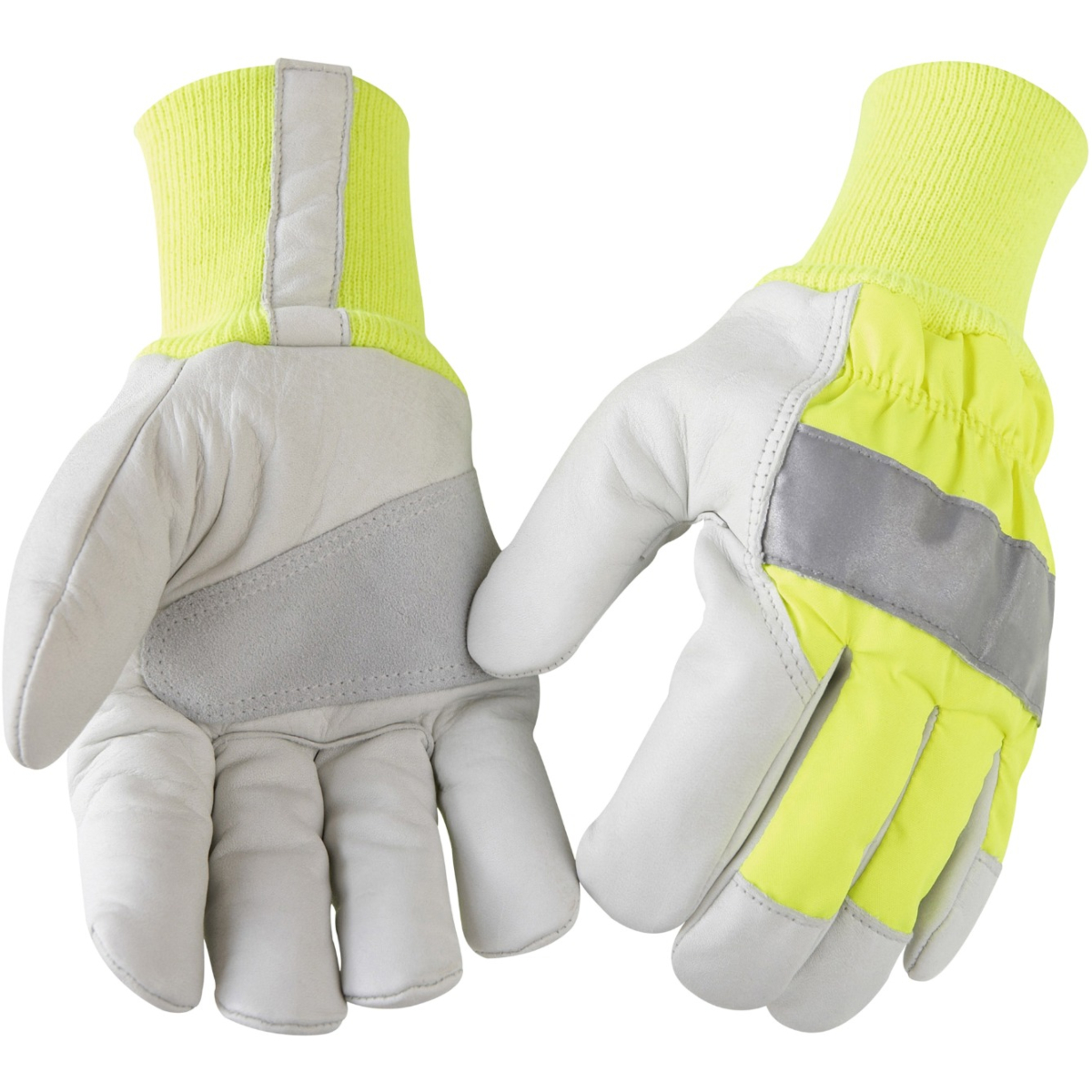 Robust och skyddande varselhandske i vattenavvisande polyestertyg. Hand i kraftigt getskinn med förstärkt handflata. Handsken är förstärkt med läder över knogarna och är vadderad med 100 gr polyesterull och fodrad med fleece.