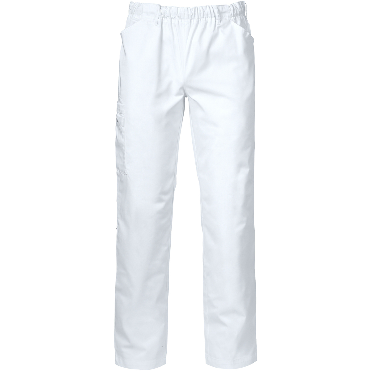 Rymlig unisexbyxa med resår och dragsko i midja. Benslejf för enkel justering till highwaterbyxa för varmare miljöer. Rymliga infällda fickor fram och dubbel benficka med dubbla pennfickor och ringtryckknapp på den ena fickan. Innerbenslängd 76 cm i storlek M. OBS: Dra av 6 cm på innerbenslängd mot måttlistan, då detta är en kortare byxa.
