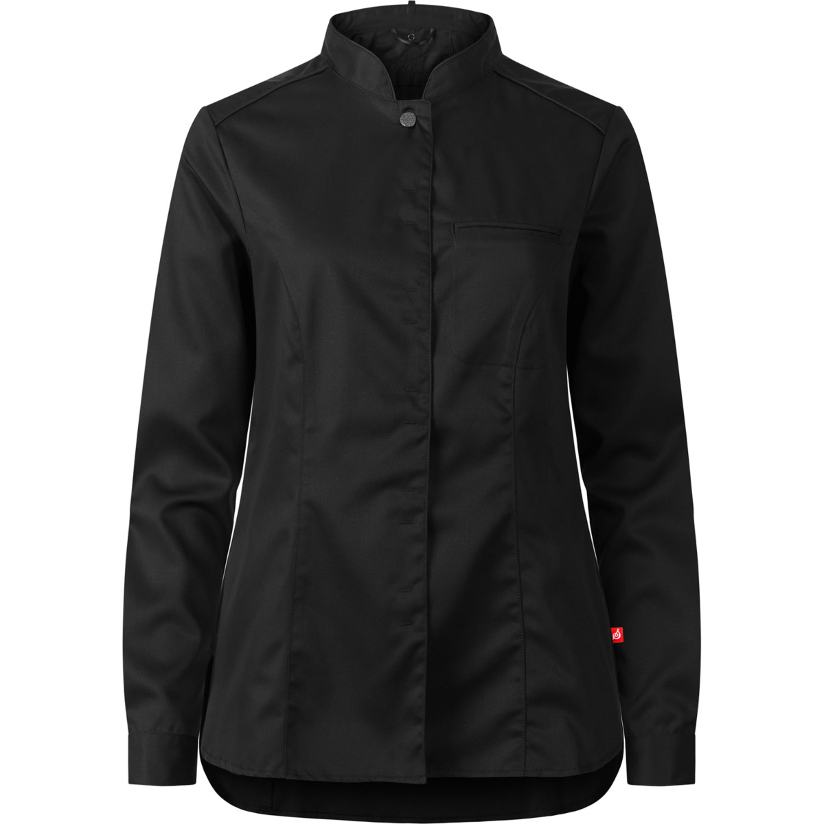 Modern kockskjorta med lång ärm i något smalare passform till dam. Modellen är inspirerad av en skjorta så den har rundad nederkant och är längre baktill.