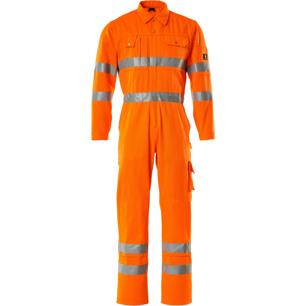 Fluorescerande och med reflexer. Ytbehandlingen gör produkten smutsavvisande. Trenålsstickningar på ärmar, benen och i grenen. Stängning med tvåvägsblixtlås, vindskydd och tryckknappar. Bröstficka med lock och tryckknapp. Telefonbröstficka med justerbart lock och pennficka. Fickor på framstycket. Innerficka med blixtlås. Det går att komma åt underkläderna från båda sidor. Bakfickor med förstärkningar, lock och kardborreband. Hammarstroppen är justerbar. Benficka med lock och kardborreband. Tumstocksficka. Knäfickorna är justerbara. Ärmficka med kardborreband. Manschetter med tryckknappsjustering. Resår och veck i ryggen. Ventilation under ärmarna. Vi rekommenderar 00718-100, 50451-916 och 20118-915 knäskydd till den här modellen. Samcertifierade med knäskyddstyp LONG enligt EN 14404.