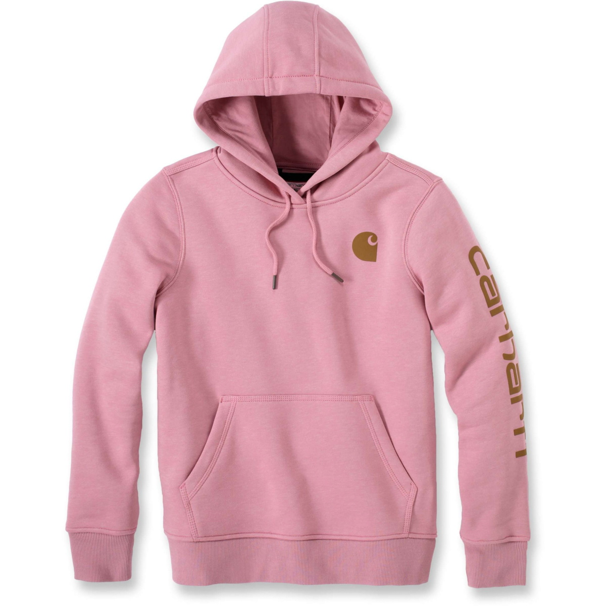 Kalla vintermorgnar är mycket bekvämare med denna mysiga hoodie för kvinnor. Tröjan är gjord av tung fleece och är borstad på insidan för extra mjukhet. Den har en avslappnad passform som möjliggör enkel lagring, och den är avslutad med en Carhartt-logotyp längs ärmen.